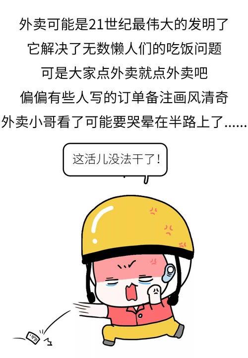 你有没有想过,在我们忙碌的生活中,外卖小哥成了我们生活中的一道亮丽风景线?他们不仅给我们带来了美食,还时不时地给我们带来一些搞笑的小插曲。今天,就让我带你一起走进外卖小哥的搞笑世界,感受一下那些让人忍俊不禁的瞬间吧!